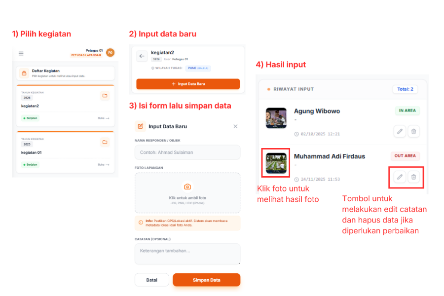 Sistem memetakan batas desa secara digital. Jika petugas mengambil foto di luar radius toleransi, sistem memberikan peringatan dini seketika.
